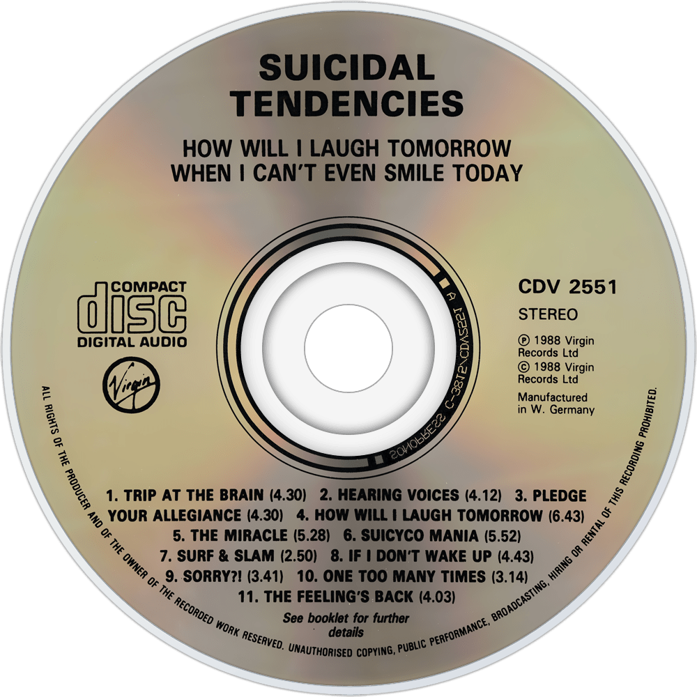 | - | 04 - Suicidal Tendencies - How Will I Laugh Tomorrow.mp3 | 16452795 | | Suicidal Tendencies | How Will I Laugh Tomorrow When I Can't Even Smile Today | 4 | Suicidal Tendencies | How Will I Laugh Tomorrow | 1988 | 404.68898 | 325 | 320 | | mp3 | mp3 | | mp3 | 2025-12-15 02:35:16 |